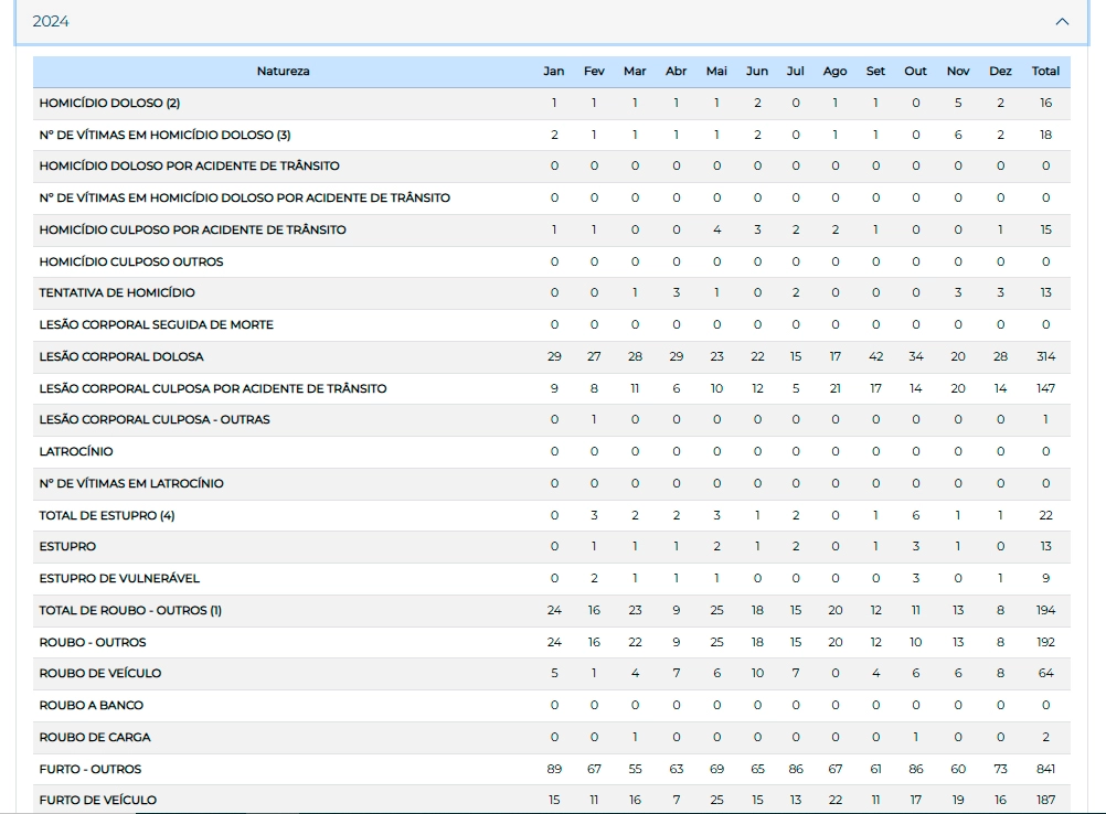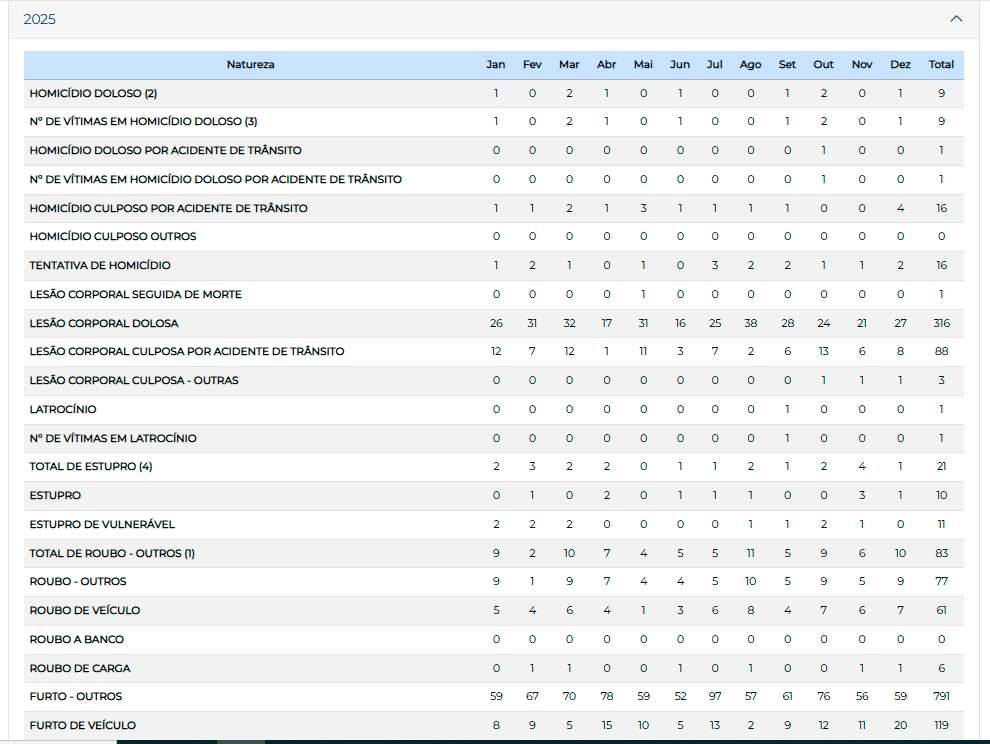 De acordo com as estatísticas da Secretaria da Segurança Pública do Estado de São Paulo (SSP-SP), Caçapava apresentou queda em todos os índices de violência no ano de 2025.